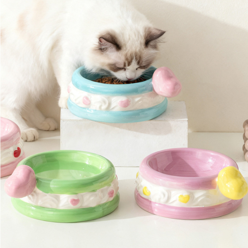 5.5 Inch Elevated Ceramic Pet Bowl with Heart Handle – Wide Mouth Bowl for Dogs & Cats