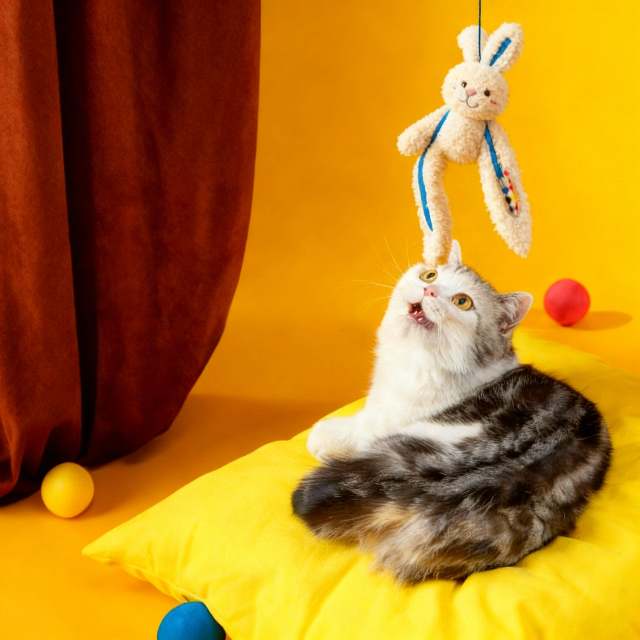 Designed as a daily play toy, it supports basic chewing, batting, and chasing activities for young cats.