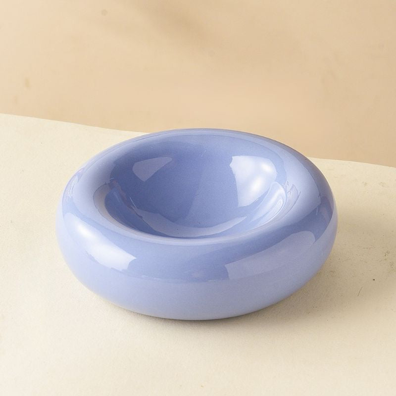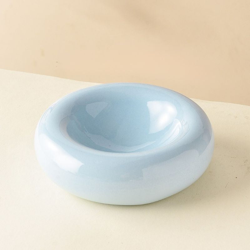 Ceramic Pet Plate with Curved Edge – Slightly Elevated Shallow Dish for Long-Haired Cats