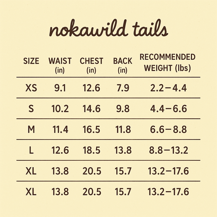 Choose size by chest girth & current weight; if between sizes, go up one.