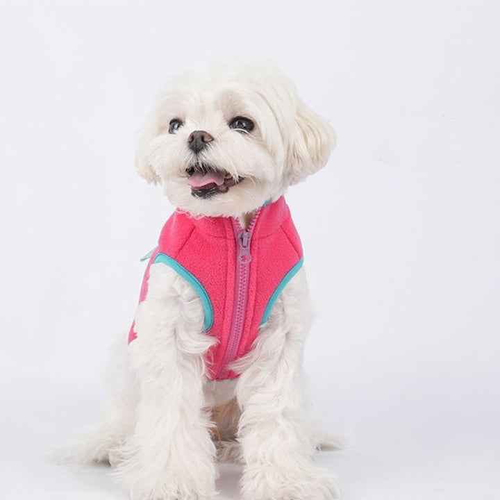 Keep your pup cozy and stylish with our candy-colored fleece dog vest. Made with soft polar fleece fabric, this warm jacket is designed for autumn and winter wear. Featuring a zip-up front and practical side pockets, it is both fashionable and functional. Suitable for small and medium breeds, the two-leg design ensures comfort and easy movement, making it perfect for outdoor walks and daily wear.