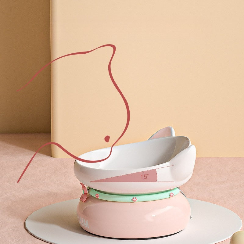 This elevated ceramic pet bowl features a tilted opening design, suitable for cats and small dogs for daily feeding and drinking.