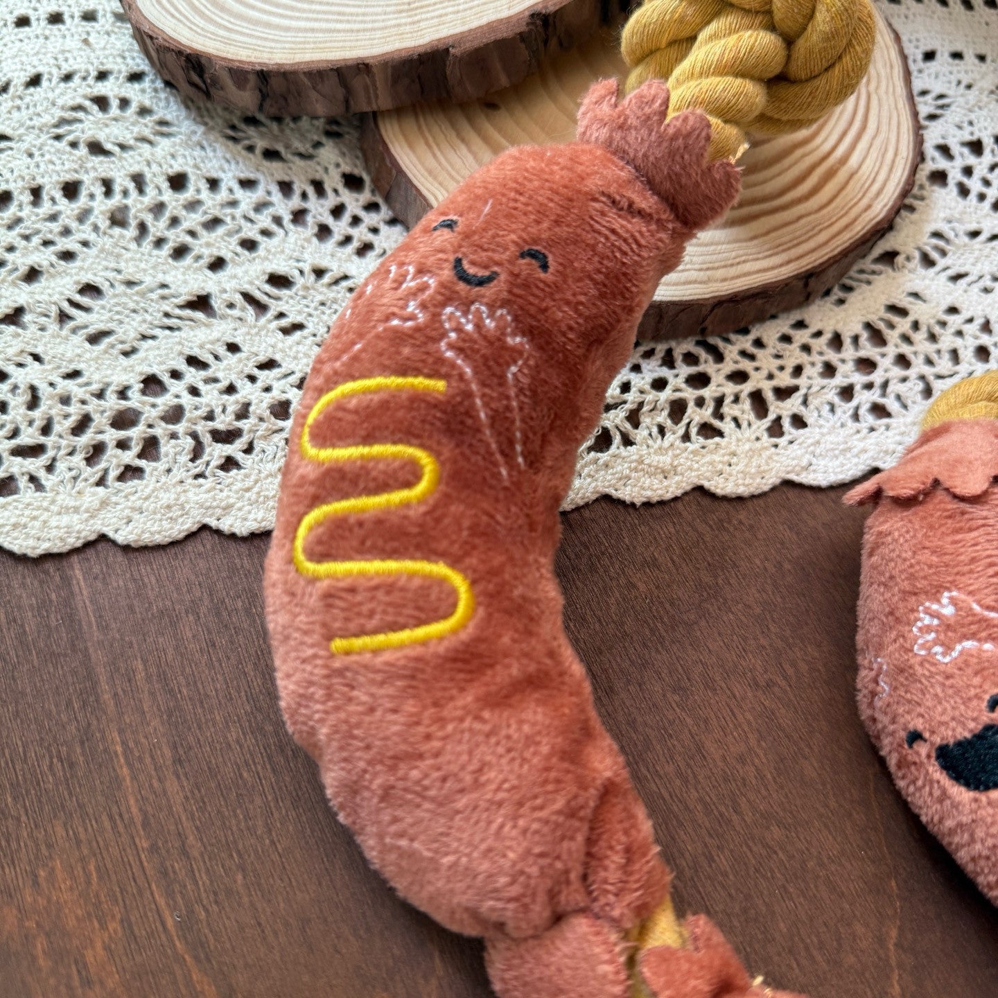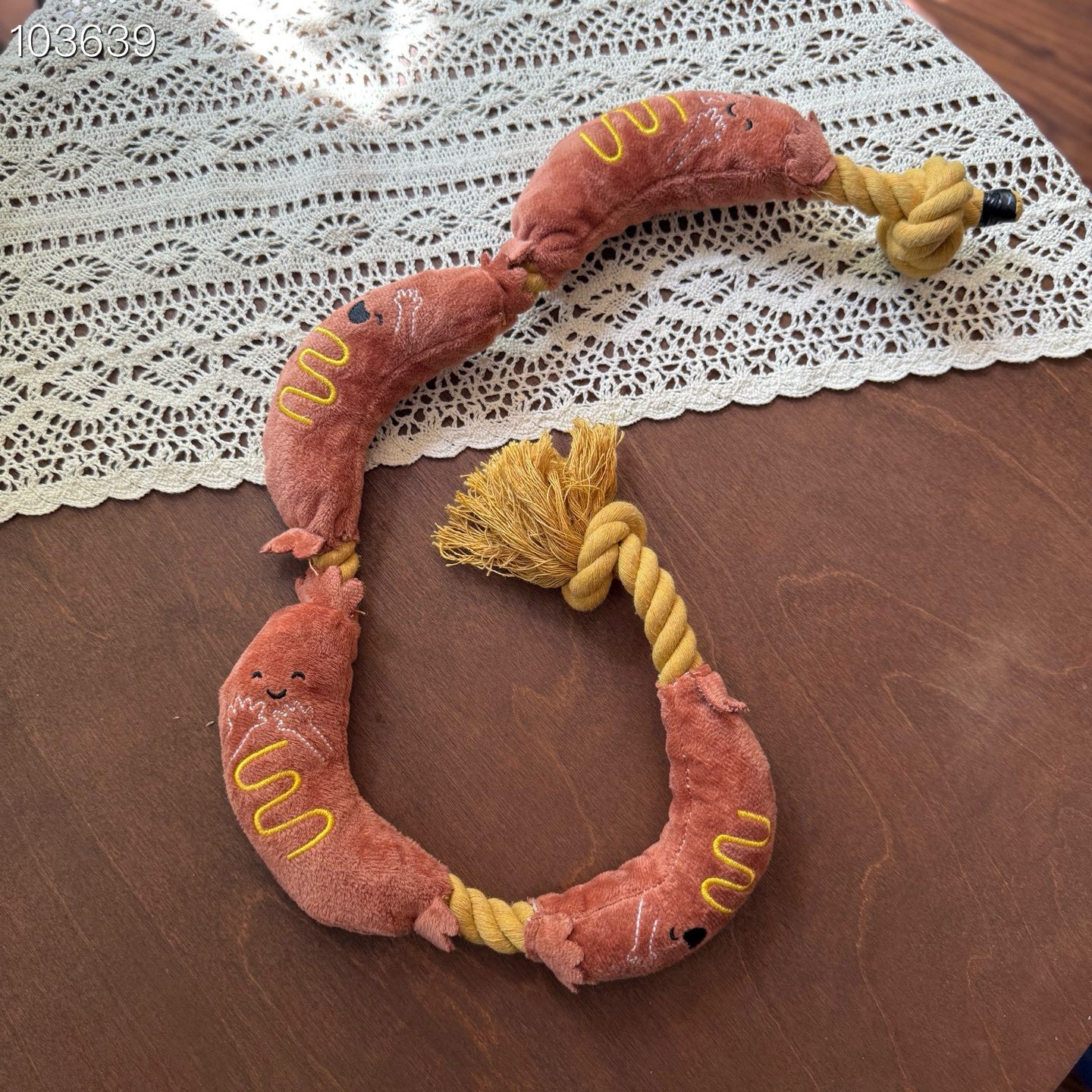 A built-in squeaker produces sound during pulling or biting, adding engagement to playtime.