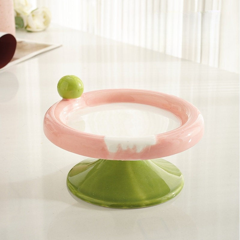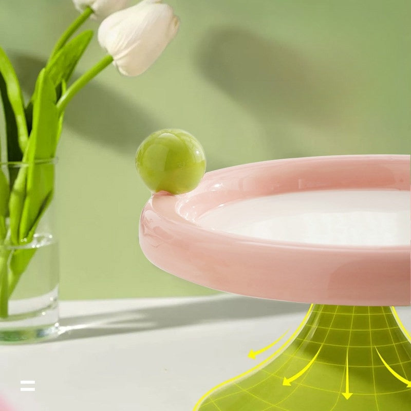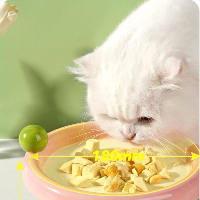Ice Cream Shaped Elevated Ceramic Cat Bowl – Shallow Dish for Kitten Wet Food & Treats