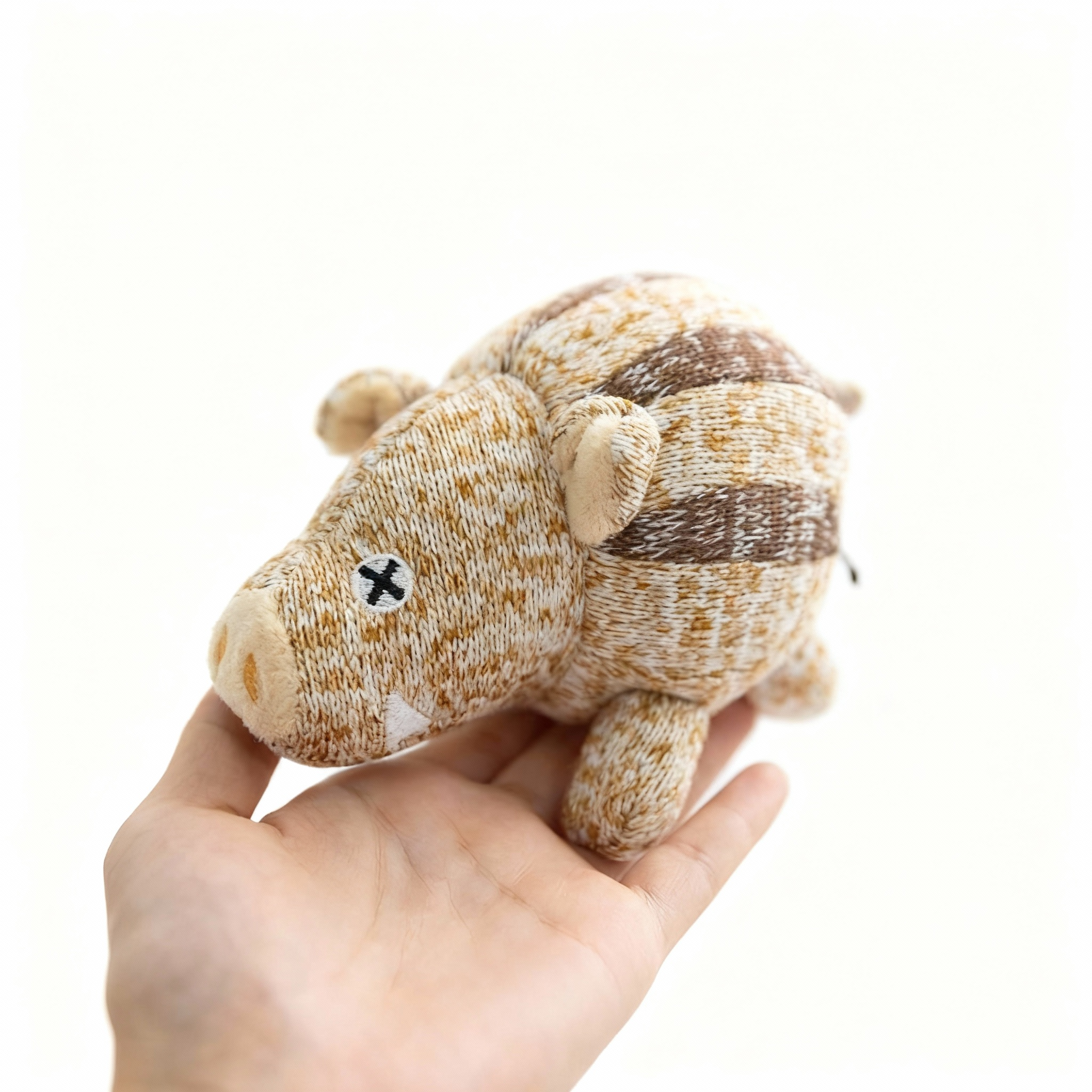This knitted squeaky dog toy features a knitted design with a built-in squeaker, suitable for puppies and small dogs.