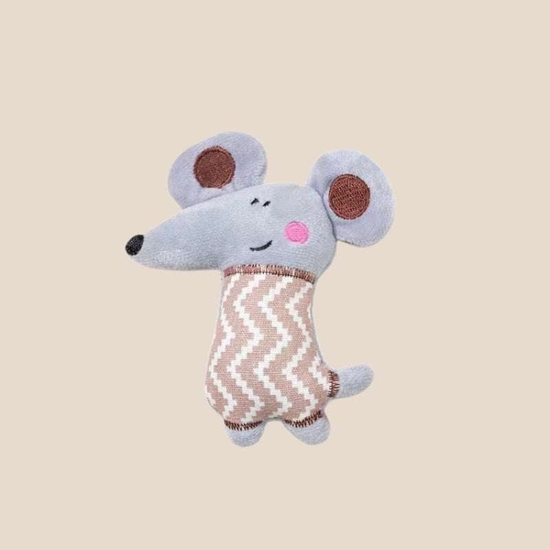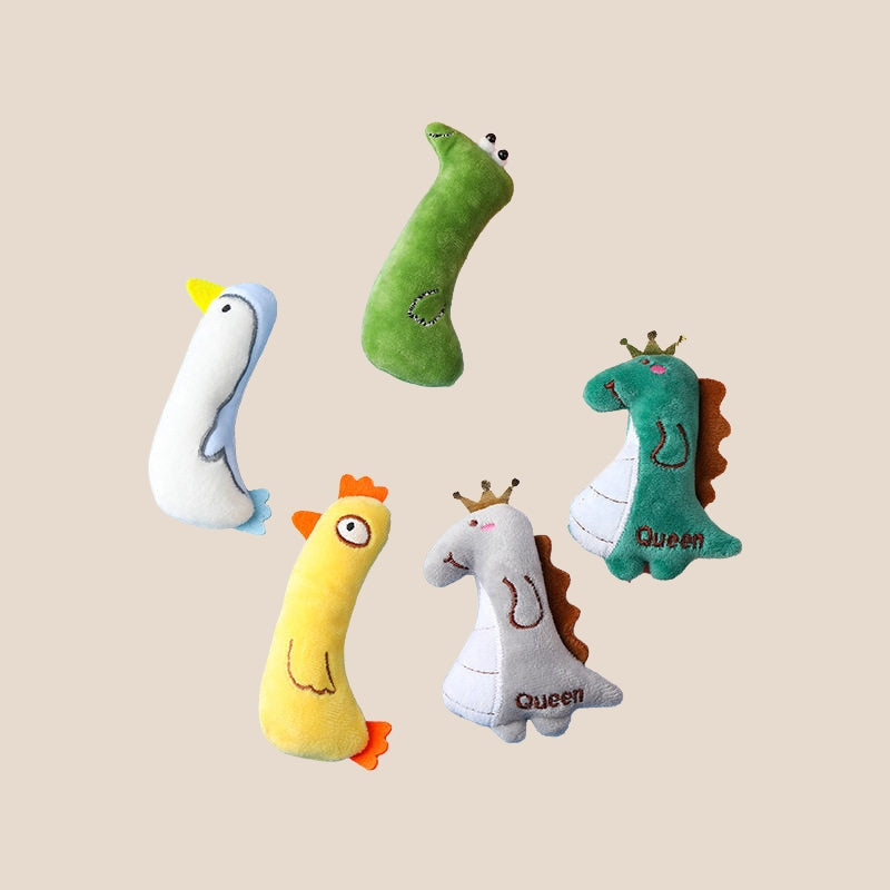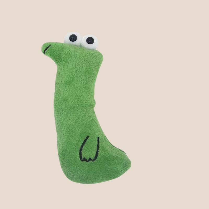 This plush cat toy is made with soft fabric and designed for cats to cuddle, bite, and play with.