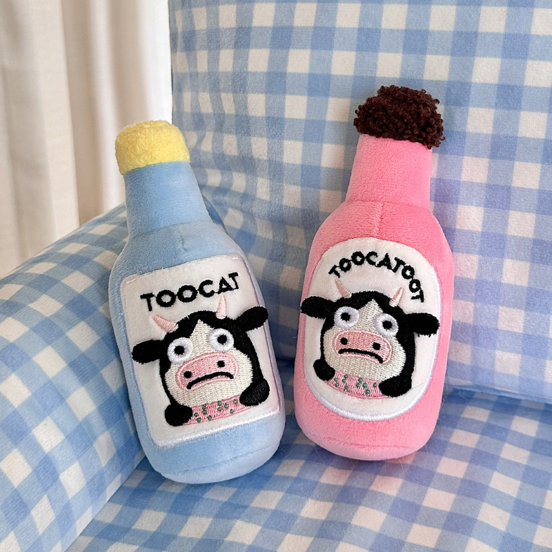 This plush squeaky dog toy is made with soft fabric and features a built-in squeaker that produces sound when bitten or pressed.