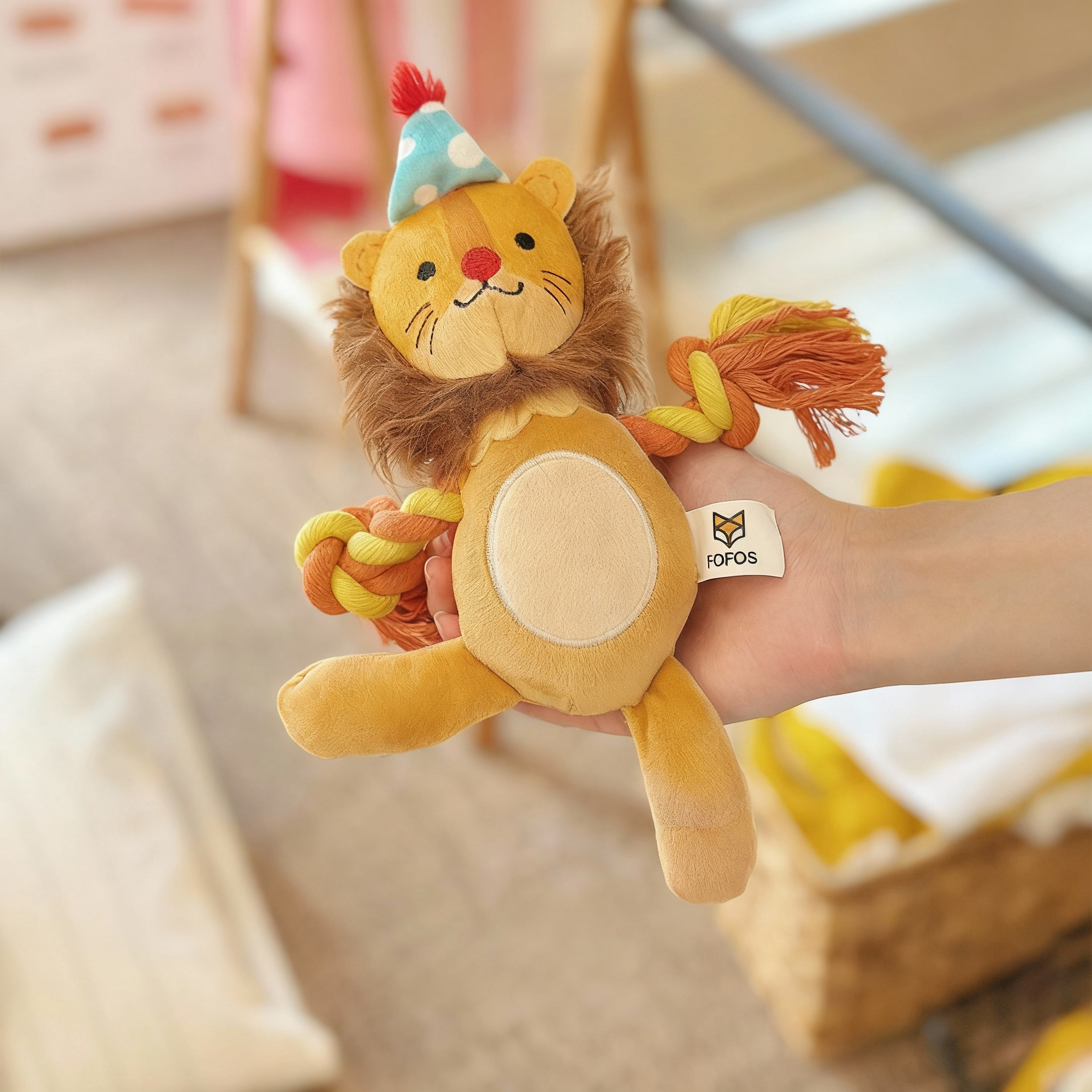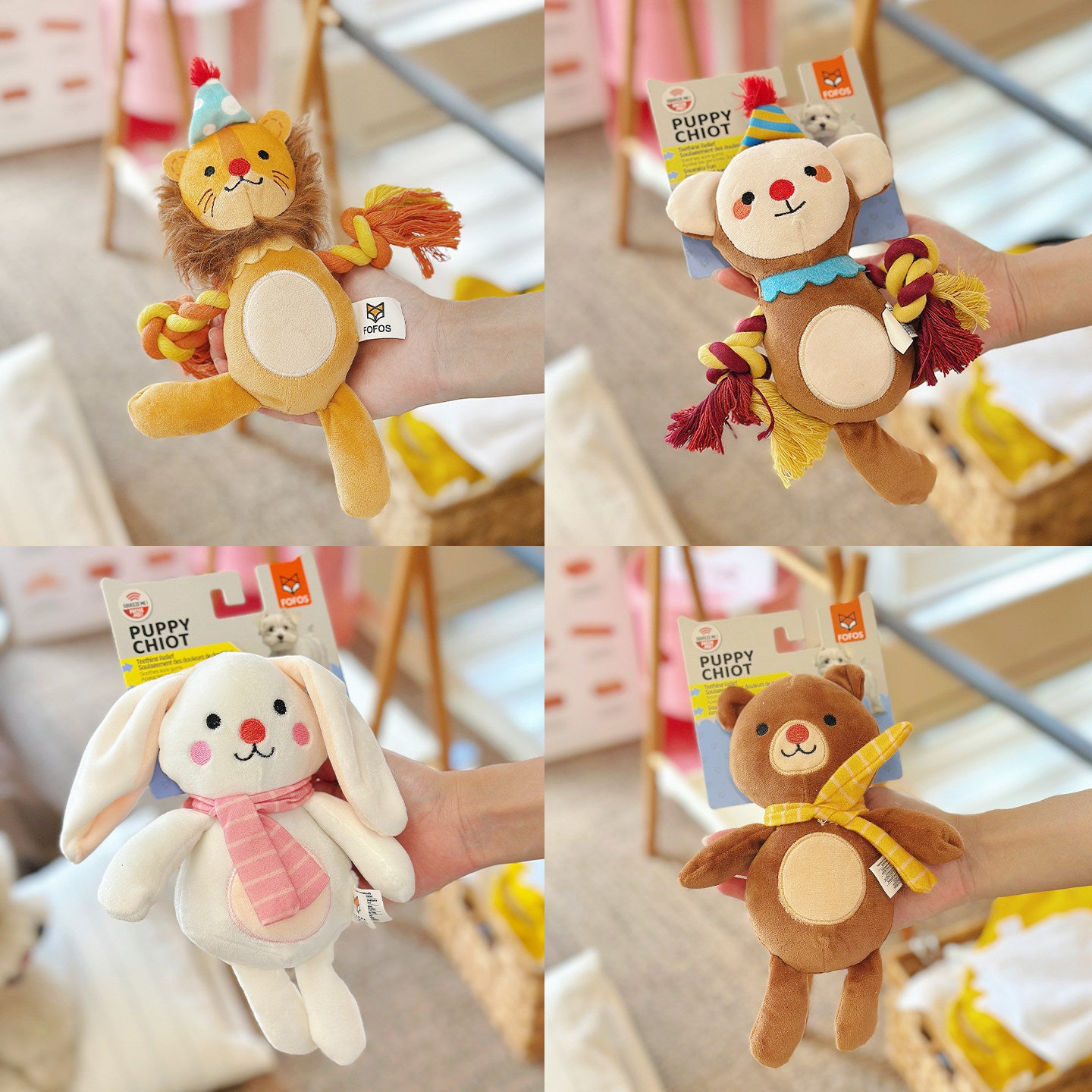 This squeaky dog toy is made with soft, skin-friendly fabric, providing a gentle touch suitable for everyday play and chewing.